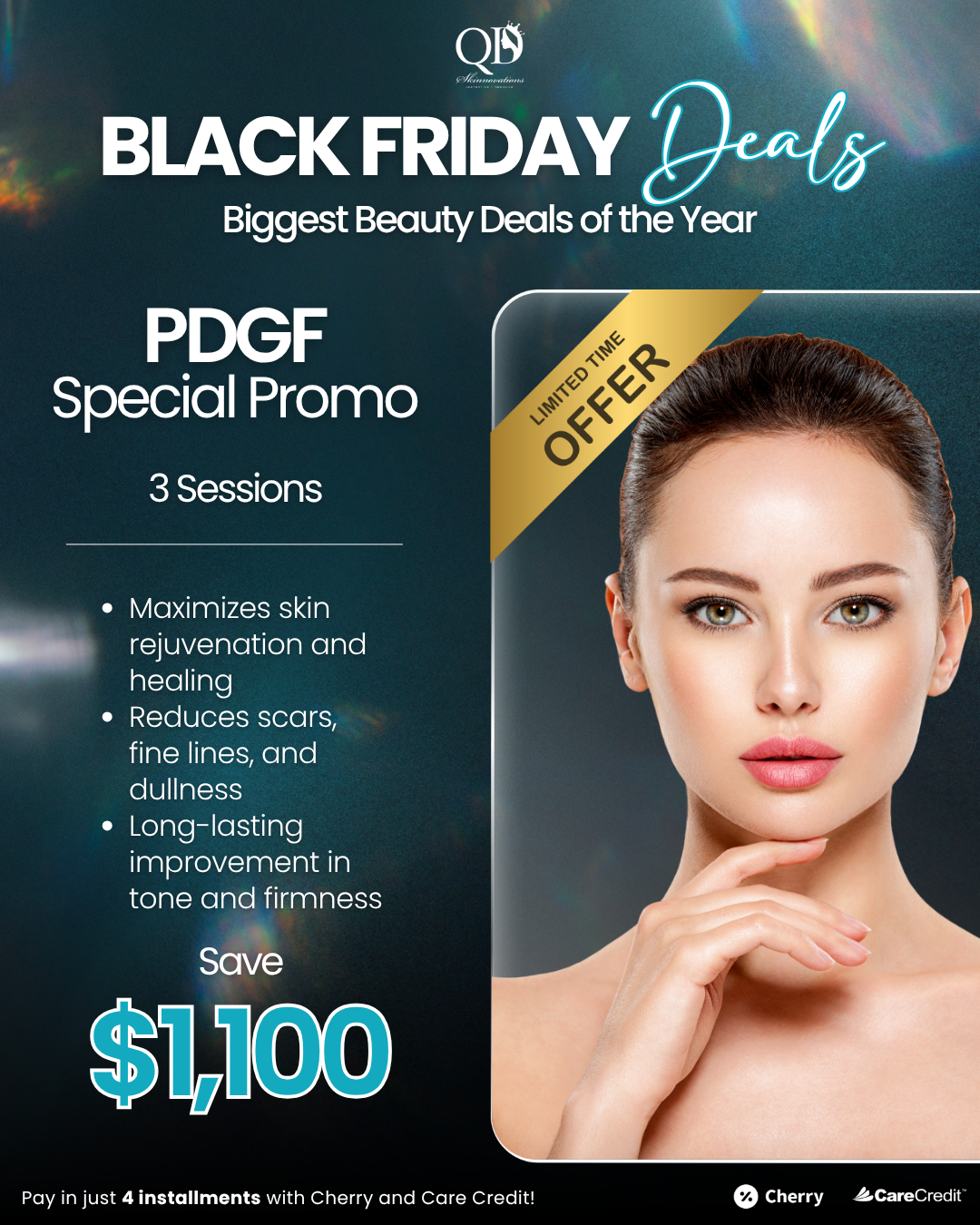 Transform dull, uneven skin with our 3-session PDGF Special Promo. Designed to reduce fine lines and scars while restoring firmness and youthful radiance — now up to 60% OFF for a limited time.