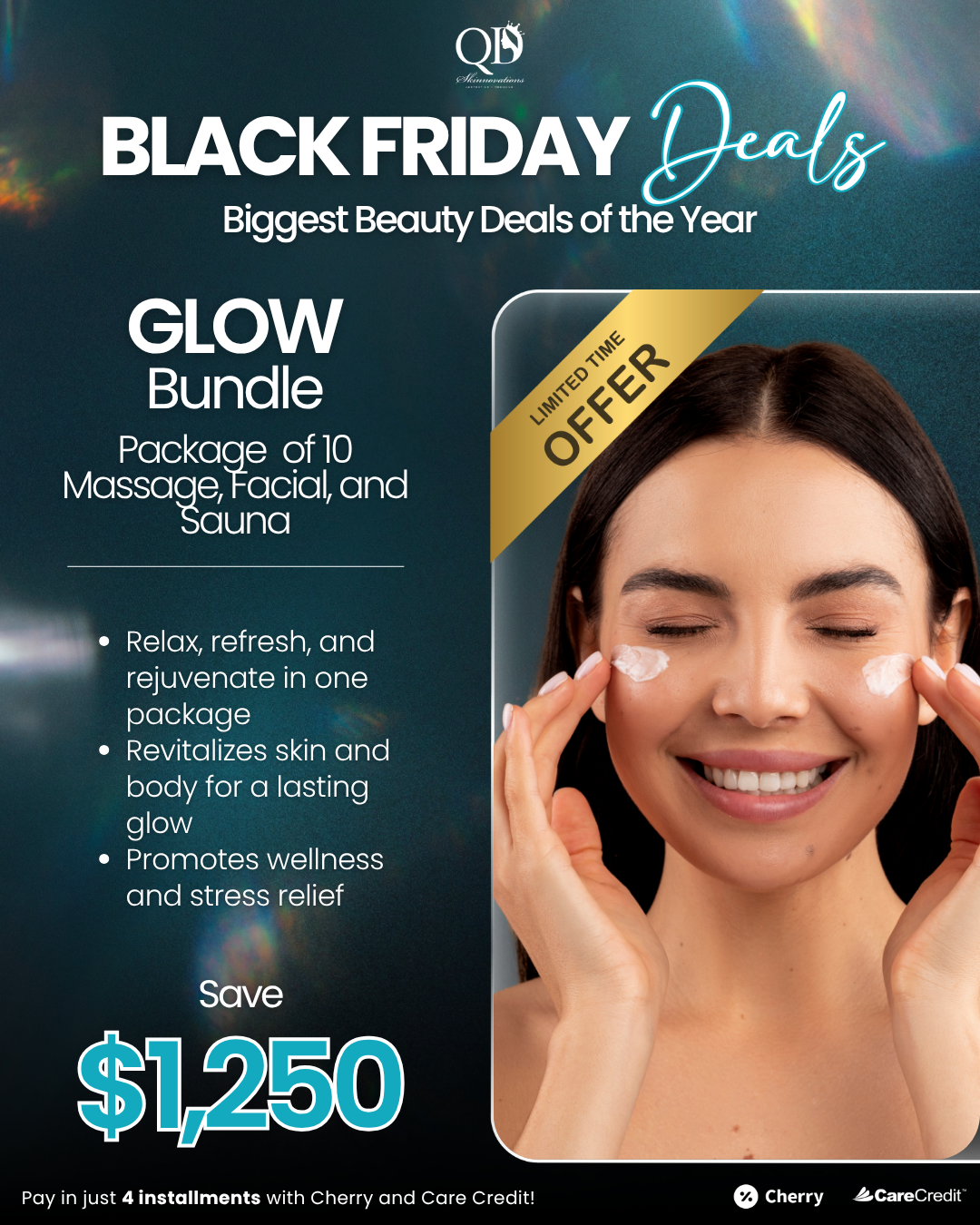 Relax, refresh, and restore your natural glow with our Glow Bundle. Enjoy a mix of massages, facials, and sauna sessions for a full-body rejuvenation — save $1,250 and feel your best from the inside out.